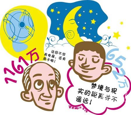 俗話說“有心栽花花不成,無心插柳柳成蔭”,購(gòu)彩過程往往也如是,精心選擇的號(hào)碼不一定中獎(jiǎng),偶爾或隨意選的號(hào)卻往往帶來意外驚喜;有些人為中獎(jiǎng)殫精竭慮一無所獲,也有些人稀里糊涂地就被大獎(jiǎng)砸中了。 原想要臺(tái)電扇卻得了1100萬 江蘇省體彩為了回饋彩民而開展“買大樂透送電扇”的活動(dòng),無錫的張大爺就是沖著電扇買了一張12元的復(fù)式票,然后再用剩余的3元錢又買了一注追加票。結(jié)果,這個(gè)“無心插柳”舉動(dòng)的結(jié)果是:張大爺電扇沒中到,卻一舉中得大樂透11049期頭獎(jiǎng),獎(jiǎng)金高達(dá)1161萬元。 張大爺已經(jīng)買了好幾年彩票,但每次數(shù)額都不大,從沒有超過10元錢,更別說什么復(fù)式票了。不過眼下的買大樂透送電扇活動(dòng)還是挺吸引張大爺?shù)模灰I6碼的復(fù)式票就有機(jī)會(huì)中臺(tái)電扇。“不就是多加幾塊錢嗎?正好夏天也來了,中臺(tái)電扇還是不錯(cuò)的。”張大爺原本只是抱著這樣的想法。 4月30日這天,他獨(dú)自一人來到了02777銷售站點(diǎn),在仔細(xì)咨詢過之后,掏出了15塊錢,打了一張最小的6碼的12元復(fù)式票。 這張復(fù)式票很快就被打了出來,遺憾的是序列號(hào)的后兩位并不是“88”,所以沒中得電扇。銷售員見張大爺很失望就安慰他:“你正好還有3塊錢零錢,不如再來1注追加吧。”張大爺當(dāng)時(shí)的情緒不高,還以為站點(diǎn)忽悠他呢,不過想想這3元錢雖然不能買復(fù)式,隨機(jī)還是可以買的,就這樣,一張隨機(jī)的3元票出爐了。 第二天開獎(jiǎng),張大爺認(rèn)真核對(duì)中獎(jiǎng)號(hào)碼后樂開了花。看到他的興奮樣子,老伴問是不是中了1000多元啊?張大爺回答道:“你少說了個(gè)萬字。” 夢(mèng)到中獎(jiǎng)號(hào)堅(jiān)守4年有回報(bào) 有人為了中獎(jiǎng)費(fèi)盡心思,可也有人僅憑著夢(mèng)里的一組號(hào)碼,竟然意外中得大獎(jiǎng)。5月7日中得大樂透11052期一等獎(jiǎng)的吉林彩民張先生就是這樣一位幸運(yùn)的彩民。 “要不是我媳婦用手機(jī)上網(wǎng)看到了開獎(jiǎng)信息,我到現(xiàn)在還不知道中獎(jiǎng)呢!”提起中得超級(jí)大樂透652萬元的獎(jiǎng)金,張先生笑得合不攏嘴。“我買彩票的號(hào)碼,我媳婦都知道,平時(shí)我忙,雖然買了彩票,但是總是忘記兌獎(jiǎng),這回多虧我媳婦看到開獎(jiǎng)號(hào),不然說不定錯(cuò)過大獎(jiǎng)呢。” |