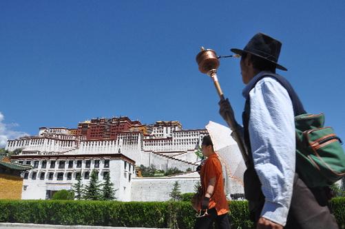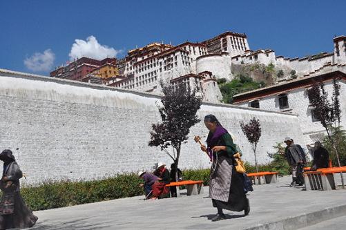 信教群眾在布達拉宮北面的轉經道上轉經