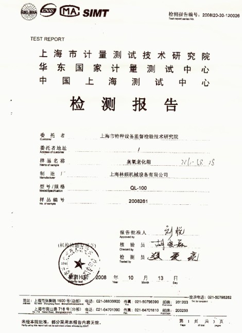 08年8月份,上海市特種設備監督檢驗技術研究院在經過眾多篩選后最終選擇林頻,與我司正式簽約一臺型號為QL-100的臭氧老化試驗箱,在出廠前嚴格把關,并已通過上海計量院第三方檢測合格,現已驗收合格并已成功交付使用.因為我們專業,所以值得信賴! 林頻全體人員歡迎您的咨詢!TEL:024-83503936 31314378 http://www.hzcables.com.cn