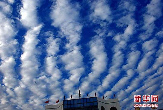 當日,山東省棗莊市山亭區天空出現大面積的魚鱗云。據氣象資料顯示,“魚鱗云”在氣象學上稱為“透光高積云”,是秋冬季強冷空氣來時出現的天氣現象。